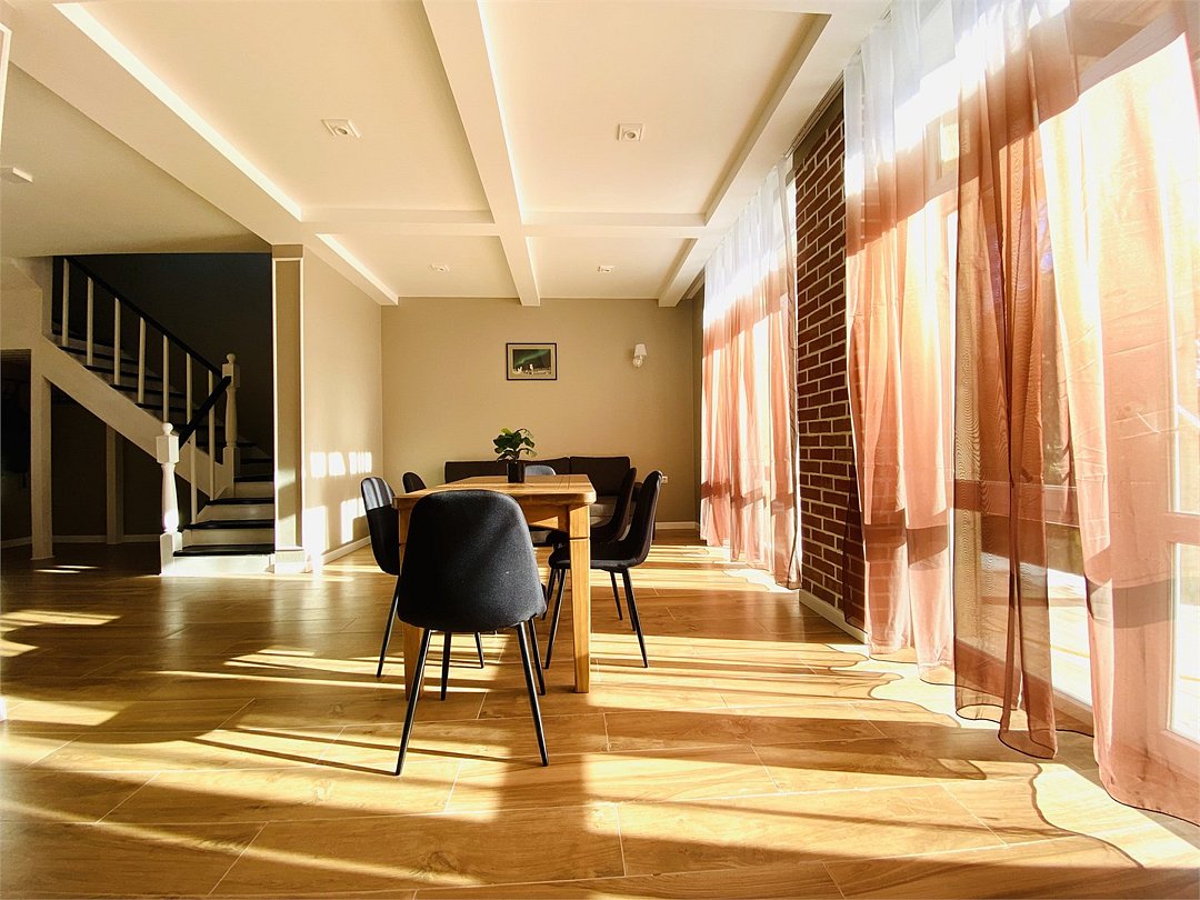 Три раздельные спальни на втором этаже, большой и стильный санузел на первом этаже. Главным плюсом River House является собственная приватная беседка с зоной барбекю.