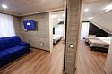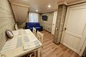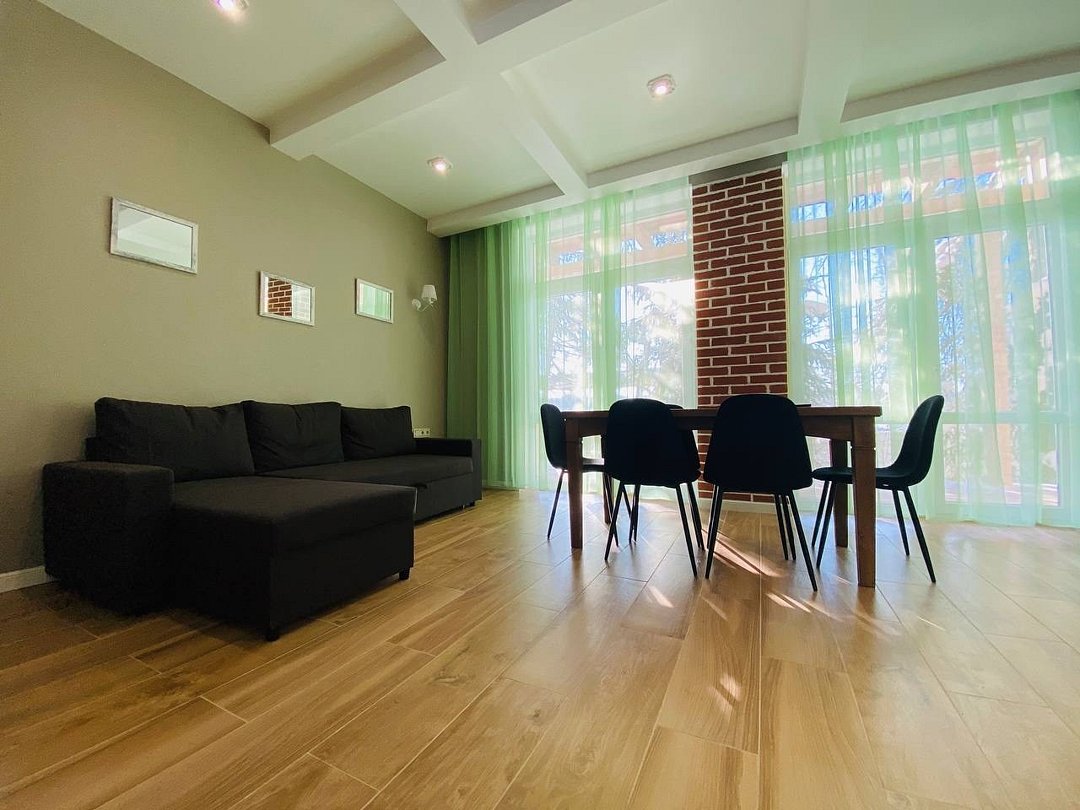 Этот номер — прекрасный выбор для семей с маленькими детьми. Расположен он на первом этаже и имеет теплые полы. В номере две комнаты, одна из которых проходная, но это никак не влияет на комфорт отдыхающих.