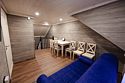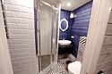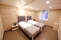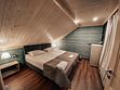 Может вместить до четырех человек. Здесь есть все необходимое для комфортного пребывания: спутниковое телевидение, бесплатный Wi-Fi, чайник, банные полотенца, набор косметических принадлежностей, фен и тапочки.