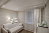 Номер состоит из двух изолированных комнат и собственного санузла. В главной комнате размещены две односпальные кровати (по запросу их можно соединить в одну двуспальную), вместительный комод, прикроватные тумбочки и телевизор.