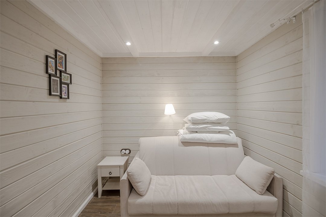 Постельное белье и полотенца предоставляются каждому гостю. Диваны в гостевых залах раскладываются (плюс четыре дополнительных места). В зимний период дом комфортно размещает до шестнадцати человек. В летний период допускается проживание до восемнадцати гостей.