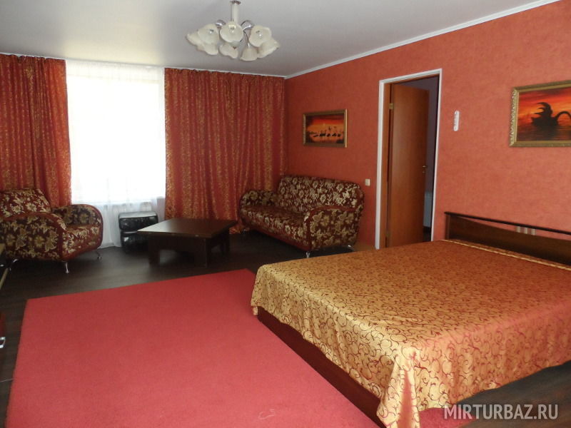 Номер категории Люкс представляет собой просторную комнату — спальня с кроватью «Queen size» размером 1,8м x 2м., совмещенная с местом отдыха. Ванная комната с туалетными принадлежностями. Номер оборудован всем необходимым для того, чтобы гости чувствовали себя комфортно. Бизнес поездка или просто отдых, произведут на Вас неизгладимые впечатления о комфорте и удобстве этого номера. Просторные, номера наполнены атмосферой домашнего уюта, позволят Вам с легкостью забыть о неудобствах возникающих в командировках или отдыхе вдали от дома.