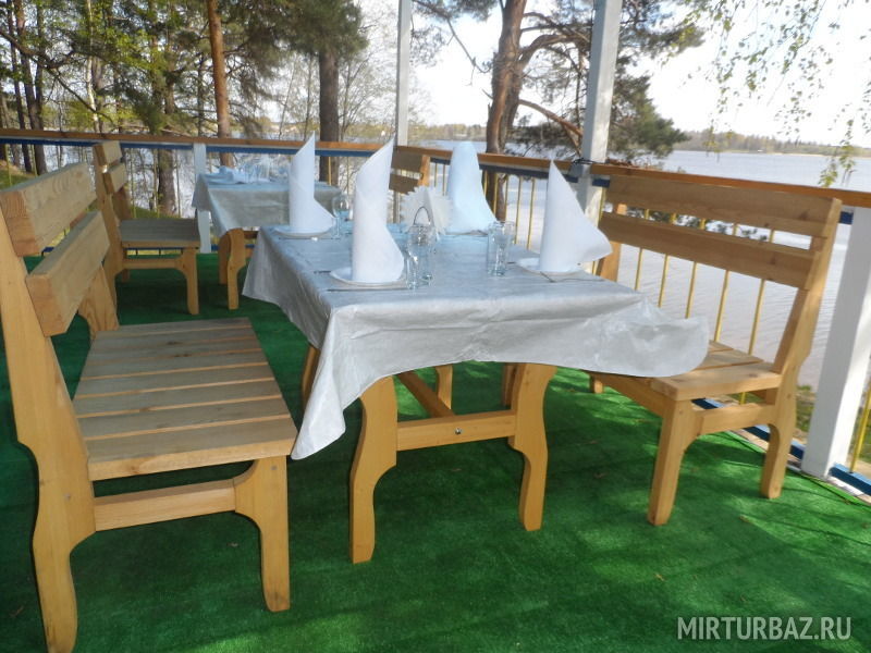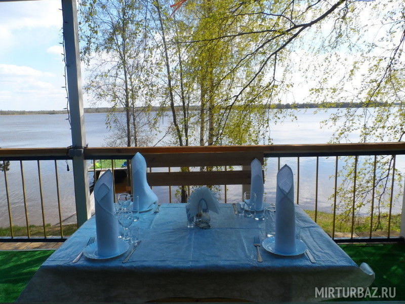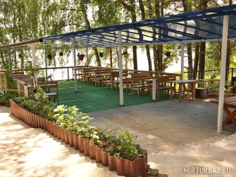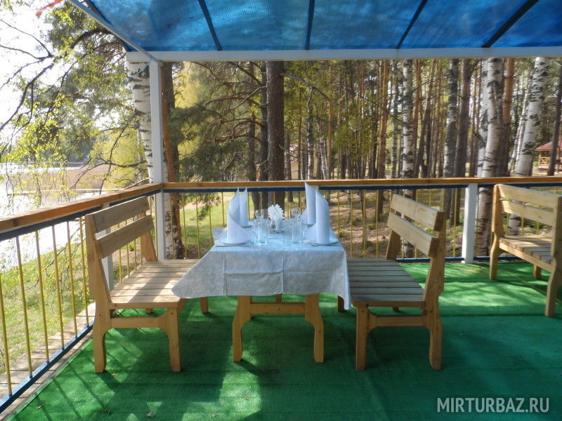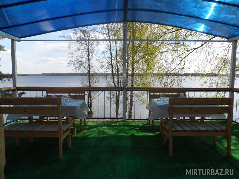Из летнего кафе открывается замечательный вид на озеро «Мстино», которым вы можете наслаждаться в любое время года. Для Вас шеф-повар готов приготовить шашлыки на свежем воздухе. Вместимость кафе до 40 человек.