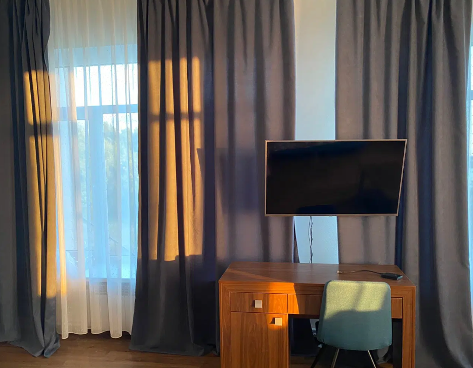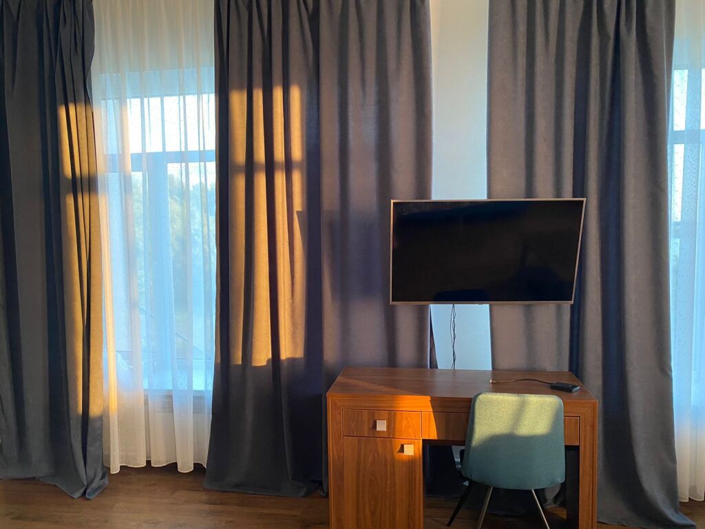 В номере вас будут ждать телевизор и халат. Оснащение зависит от выбранной категории номера.