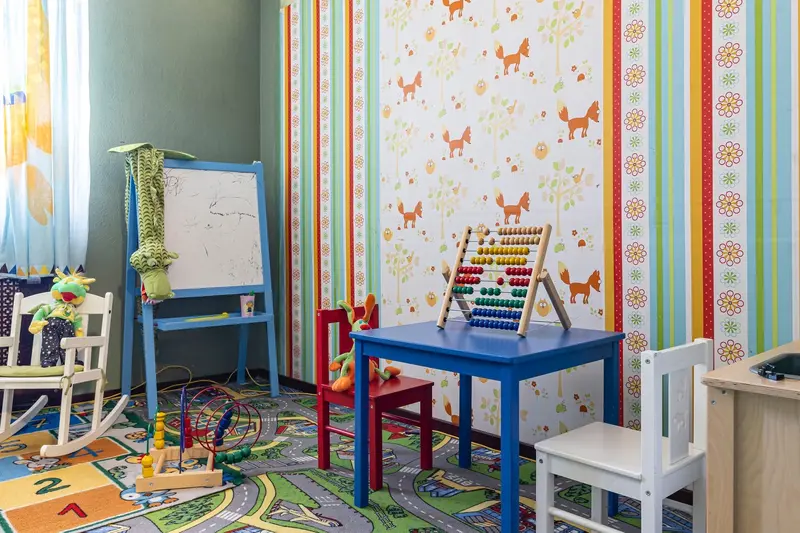 Две детские площадки на улице понравится детям любого возраста. А родители могут наблюдать за ними, удобно расположившись на скамеечках рядом с каминным залом…