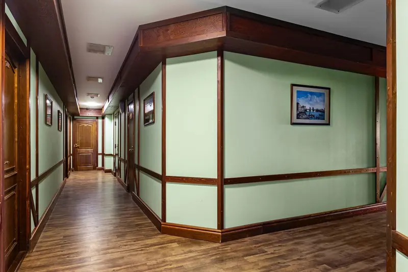 Семейным парам, приехавшим отдыхать с детьми, предлагается удобное и комфортное размещение в 2-х двухкомнатных семейных номерах, расположенных на втором этаже основного корпуса гостиницы. На окнах есть светозащитные шторы, которые позволят сладко спать даже в период белых ночей!