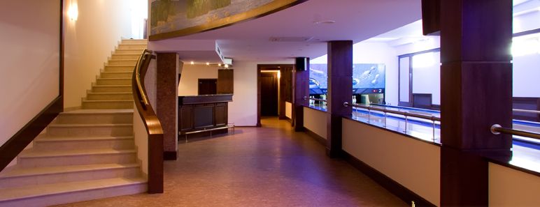 Новый конференц-зал находится на втором этаже отдельного комплекса с панорамными окнами на финский залив. Зал оборудован двумя широкоформатными телевизорами, бесплатный WiFi, флипчартом, видео-аппаратурой.