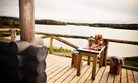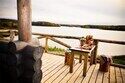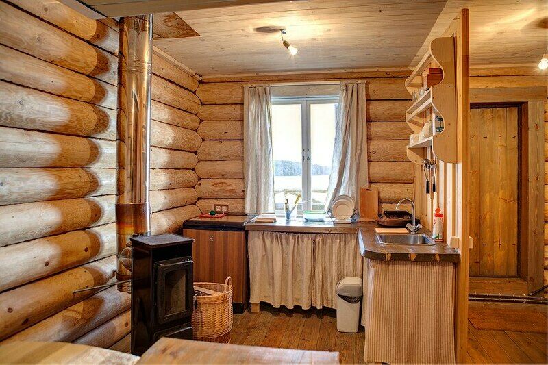 Полностью обустроен для комфортного проживания: душевая, печь, газовая плита, моечная раковина, холодильник, разделочный стол и полки с набором посуды и инвентаря. На террасе коттеджа имеется собственный мангал и отдельный спуск к озеру – ваш личный причал и место для купания!