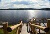 Комфортабельный коттедж. Из окон и с террасы коттеджа открывается прекрасный панорамный вид на озеро и окрестности. Несколько коттеджей находятся на первой линии и имеют собственный обустроенный спуск к озеру (причал).