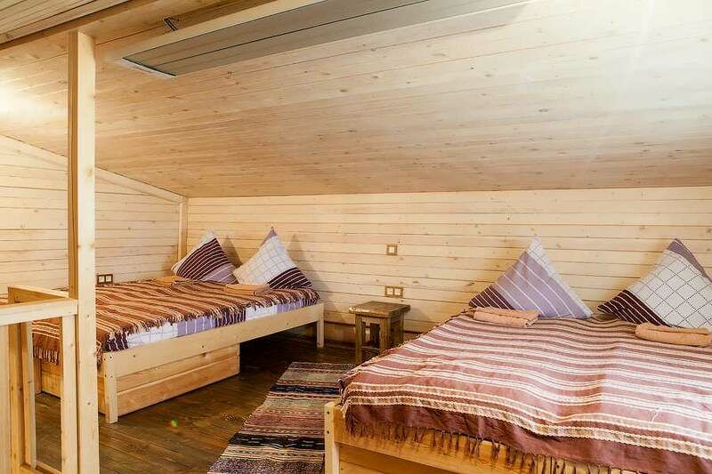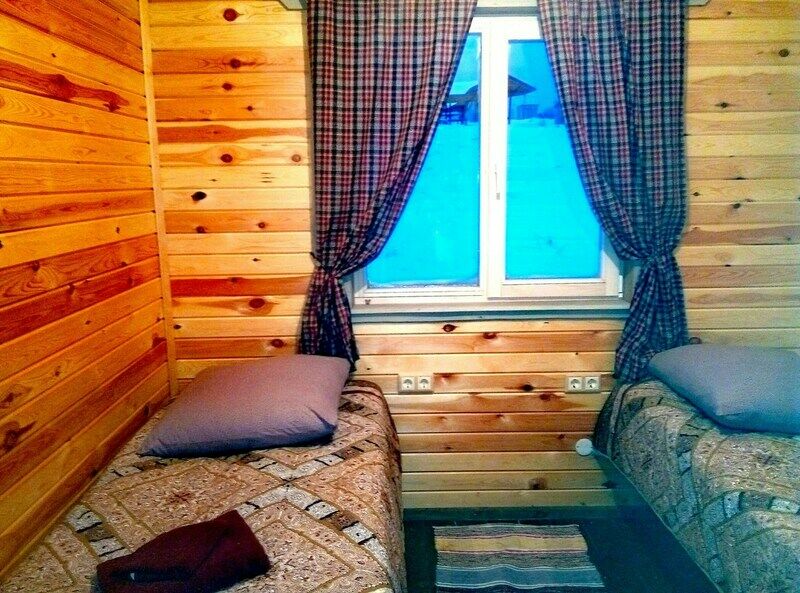4 односпальные кровати, санузел без душа, на терассе есть собственный мангал и запас дров