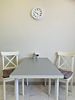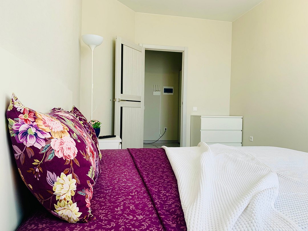 Двухкомнатная квартира в современном стиле расположена в самом центре поселка. Двуспальная кровать шириной 160 сантиметров и диван-кровать, две односпальные кровати шириной по 120 сантиметров каждая, комплекты цветного постельного белья и гигиенический набор, высокоскоростной Wi-fi и ТВ, кухня с необходимой техникой, посудой, столовыми приборами, наличие гладильной доски, утюга и фена.