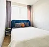Квартира-студия в современном стиле расположена в самом центре поселка. Двуспальная кровать шириной 180 сантиметров, комплекты цветного постельного белья и гигиенический набор, высокоскоростной Wi-fi и ТВ, кухня с необходимой техникой, посудой, столовыми приборами, наличие гладильной доски, утюга и фена.
