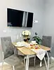Квартира-студия в современном стиле расположена на территории аула Новая Адыгея. Двуспальная кровать шириной 160 сантиметров и диван, комплекты цветного постельного белья и гигиенический набор, высокоскоростной Wi-fi и ТВ, кухня с необходимой техникой, посудой, столовыми приборами, наличие гладильной доски, утюга и фена.