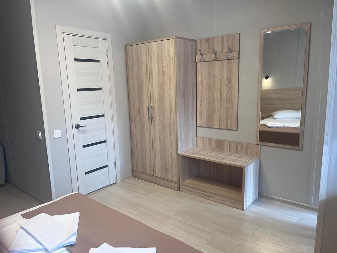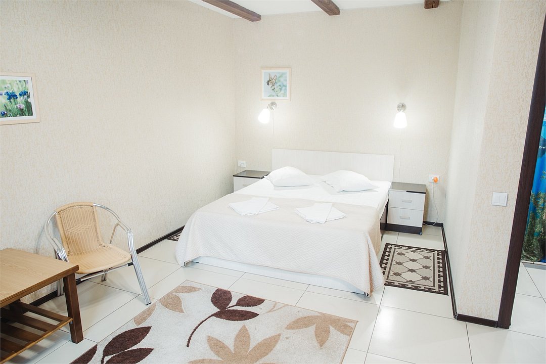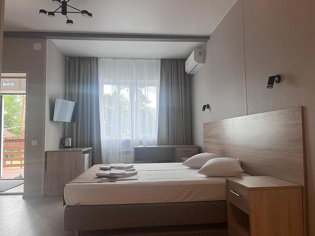 Wi-Fi, интернет, кондиционер, светильник, фен, санузел, лоджия, двуспальная кровать, шкаф для одежды, вешалки, журнальный столик, письменный стол, багажная тумба, зеркало, две комнаты, минеральная вода, чайник, гостиная зона, отопление, отдельный вход в номер, душ, стаканы, столовые приборы, стул, стол, туалетные средства, мангал, принадлежности для барбекю, цифровое тв, диван-кровать, раскладной диван, телевизор с плоским экраном, мини-холодильник, мини-кухня, москитная сетка, общественный бассейн, уборка номера, мыло, затемняющая штора, можно с питомцами, уличная мебельВ номере