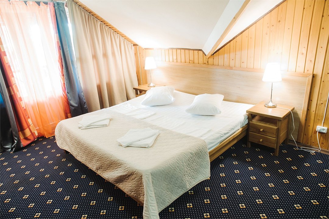 Тихий уютный номер из двух комнат с видом на лес. Собственная терраса с уличной мебелью, зонтом и зоной барбекю . Гостиная с мини кухней, свч печью, кулер с водой, набор посуды, чайн к, холодильник, обеденный стол на четыре персоны, ТВ, раскладной диван. Спальня с большой кроватью, ТВ. Ванная комната с душевой кабиной, туалетные принадлежности, тапочки, халаты. По запросу в номере устанавливается на диване два дополнительных детских места для детей о. 0 до 17 лет.Услуги и удобства