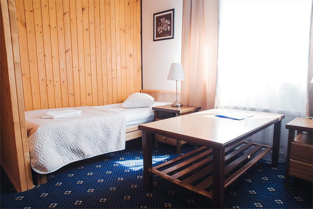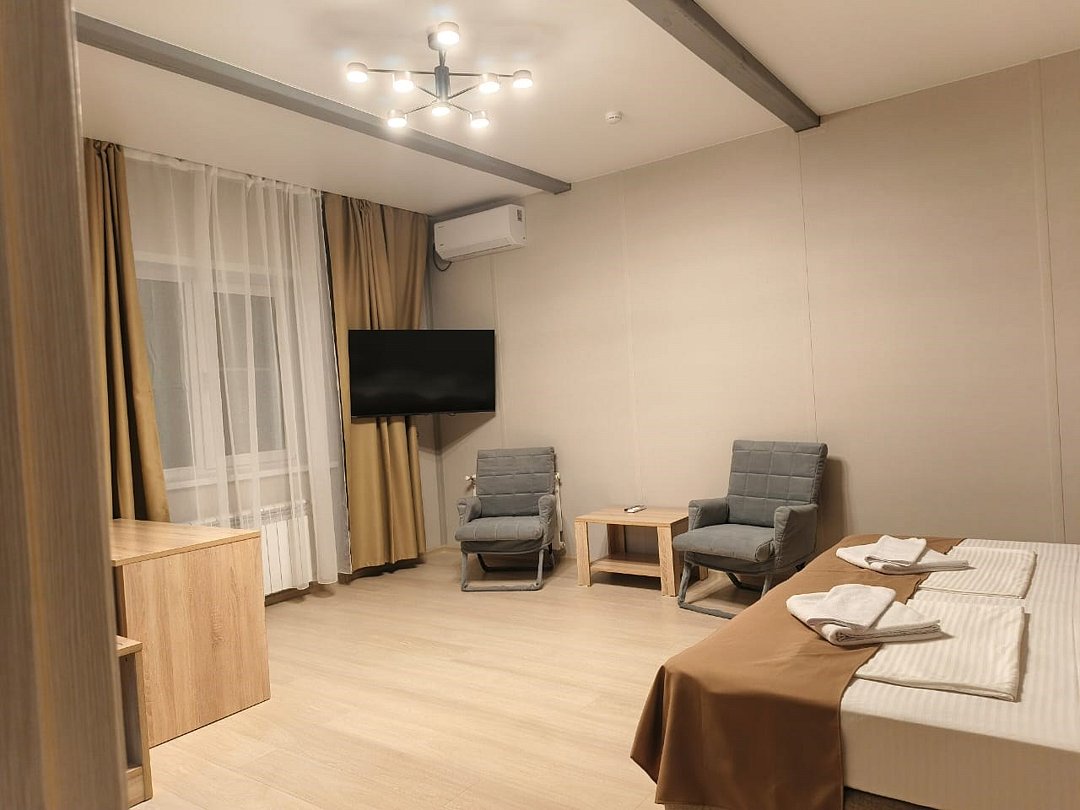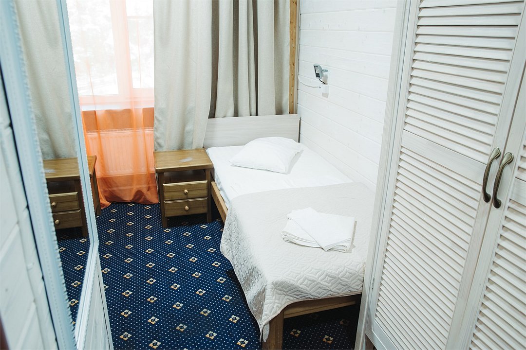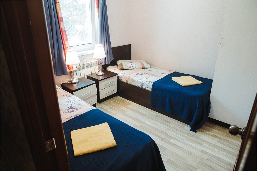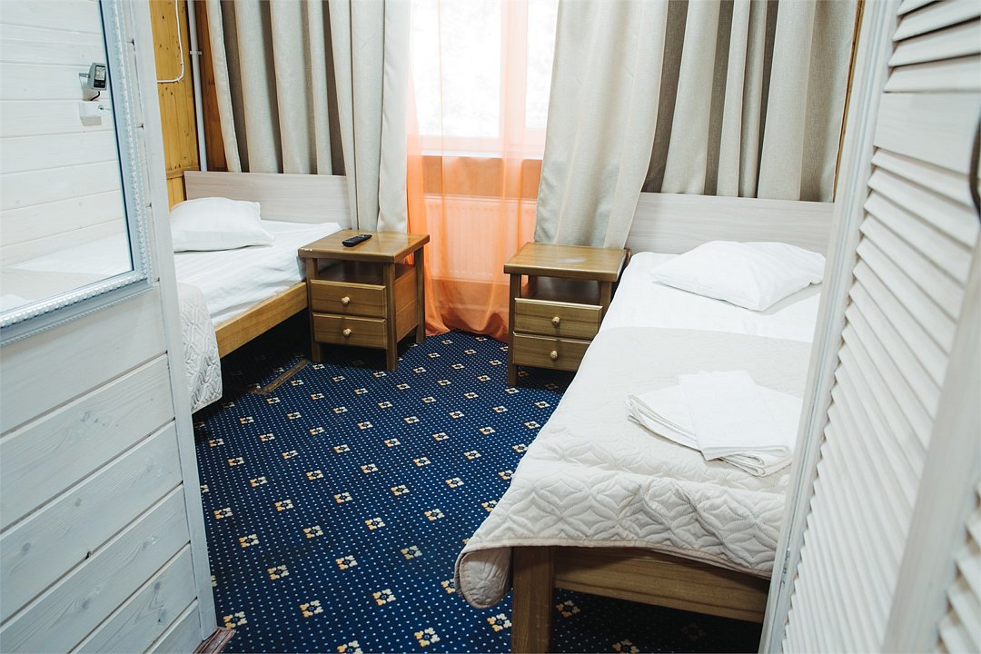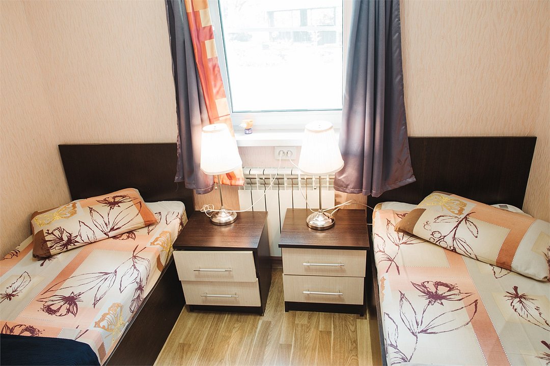 Однокомнатный двухместный номер с двумя отдельными кроватями. Площадь номера — 16 кв.м. В номере: спальная комната, туалетная комната с ванной. Оснащение номера: холодильник, фен, туалетные принадлежности, спутниковое TV, ср-ва личной гигиены (гель/шампунь), эл.чайник, чайные чашки на 2 персоны, стаканы, бесплатный Wi-Fi в номере и в общественных местах.Услуги и удобства