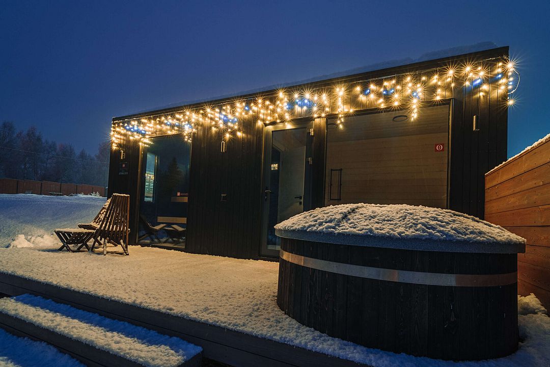 Инфраструктура: купель, зона отдыха, полотенца, шапочки, душТемпература парения: 130 °CСтоимость: 3900 ₽/час в первый час, последующие — 3000 ₽/час.