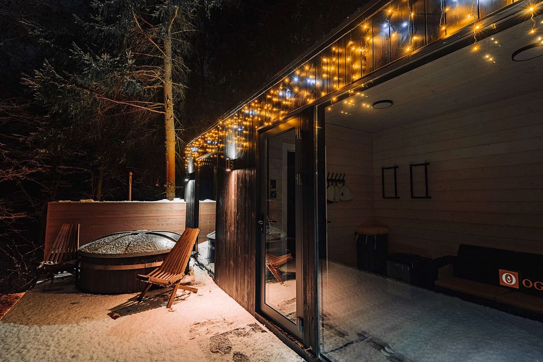 Инфраструктура: купель, зона отдыха, полотенца, шапочки, душУмная баня под управлением голосового помощника Алисы поможет вам окунуться в незабываемую атмосферу с помощью эффектов дождя, тумана, подсветки и специально подобранной музыки.