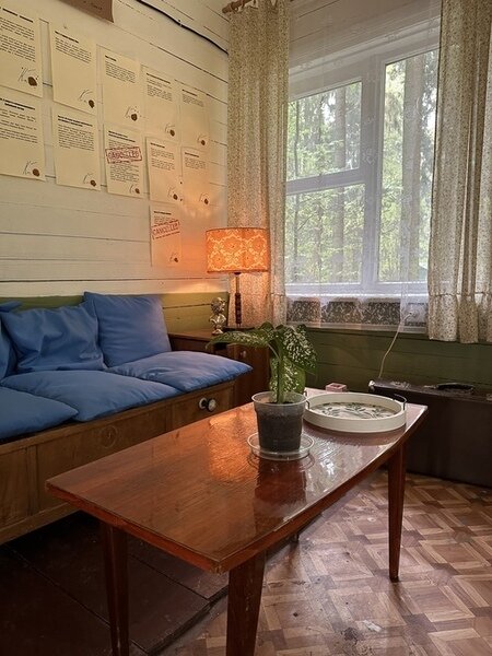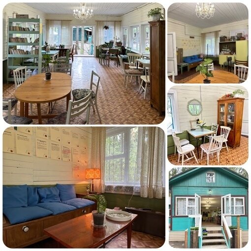 Площадь 50 кв.м. • кафе с уютной верандой • место с историей; • свой лес и выход к воде • 17 бюджетных домиков для гостей • рядом бесплатная парковка; • удобное месторасположение в 2 минутах от пирса и большой воды • проектор; • светлые стены; • просторный зал; • ретро дизайн; • своя туалетная комната; • без ограничений по шуму и времени! • можно размесить до 90 гостей с ночевкой по домикам и комнатам.