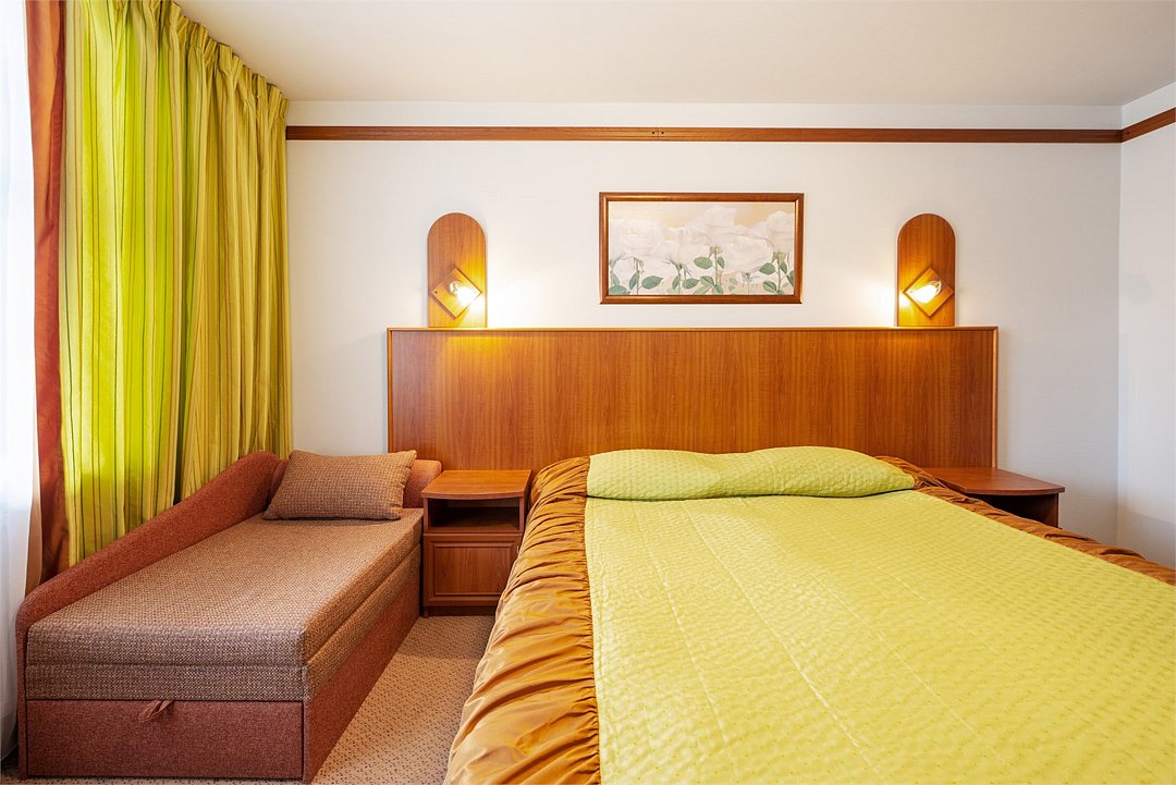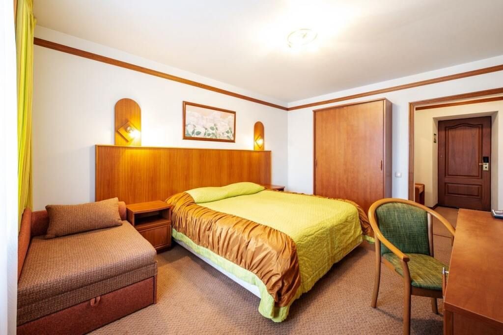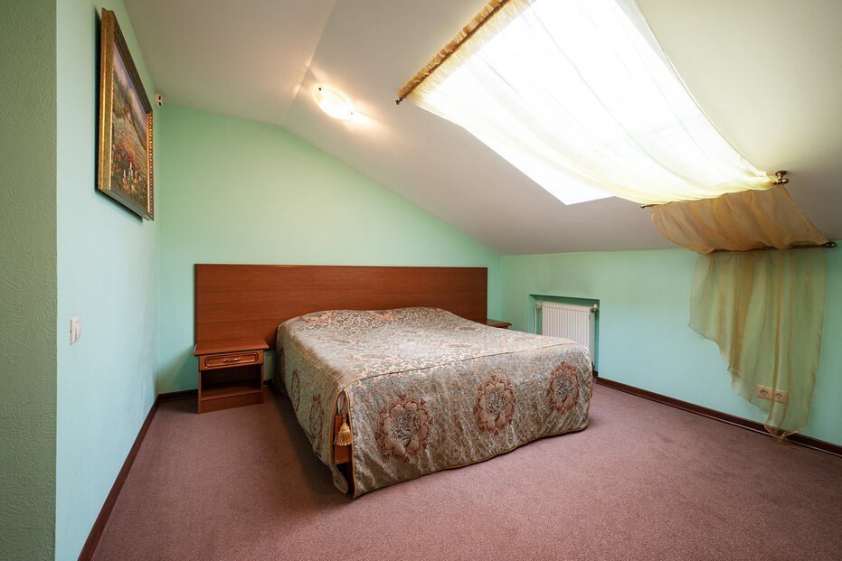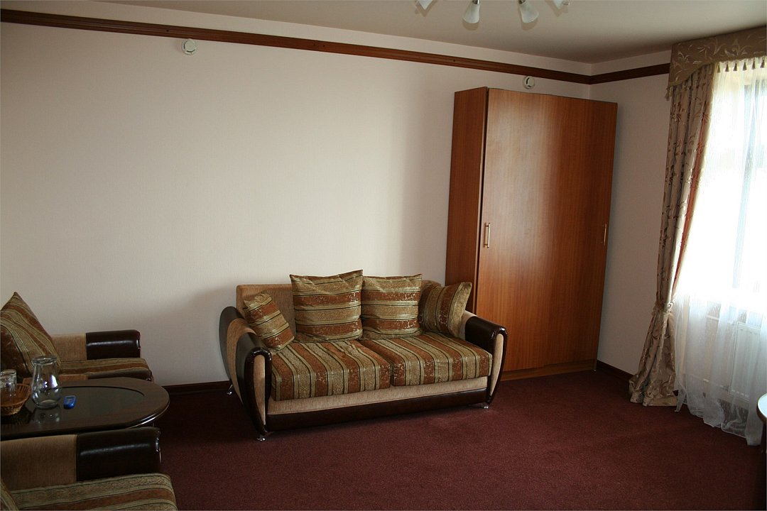 Однокомнатный номер площадью около 30 кв.м. для комфортного размещения двух-трех человек. В номере расположена двуспальная кровать и раскладная кушетка. Возможна установка детской кроватки.Услуги и удобства
