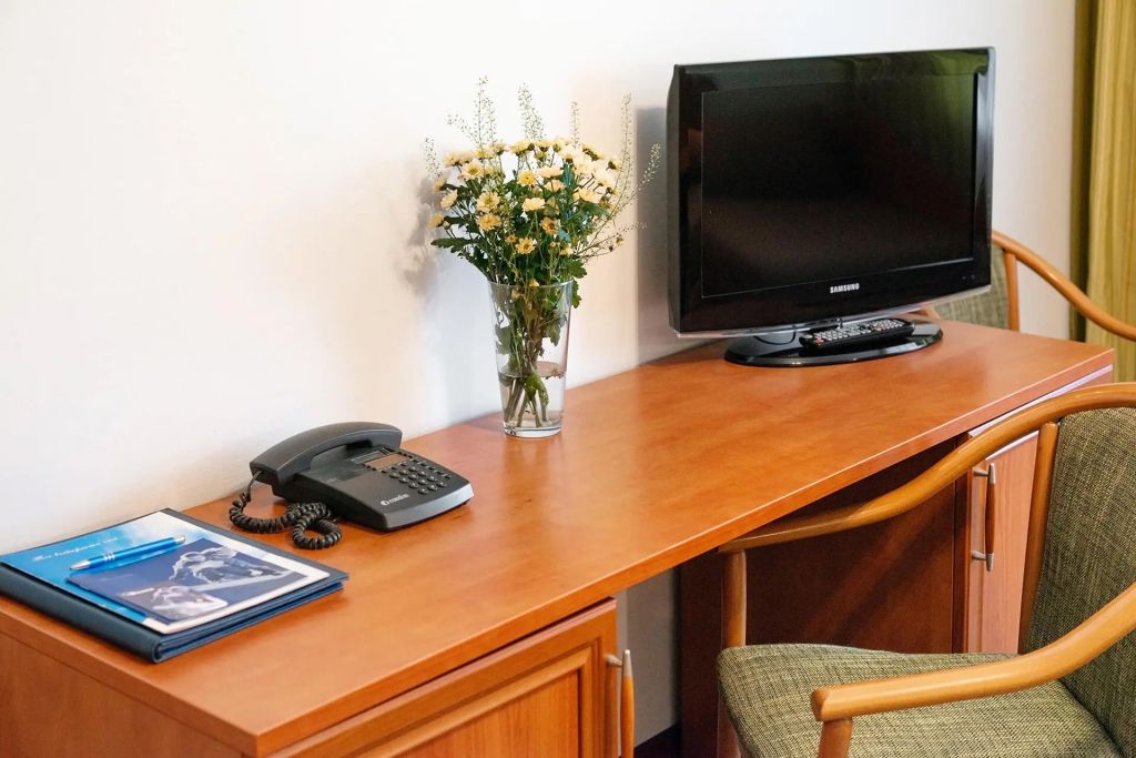 Wi-Fi, кулер, фен, душевая кабина, теплый пол, банные полотенца, две полутораспальные кровати, тумбы, шкаф для одежды, вешалки, багажная тумба, зеркало, комод, чайник, питьевая вода, ковровое покрытие, стаканы, стул, стол, вид на парк, внутренний телефон, телевизор с плоским экраном, мини-холодильник, москитная сетка, гостиничная парфюмерия, теплые полы, номер для некурящихВ гостиничном номере