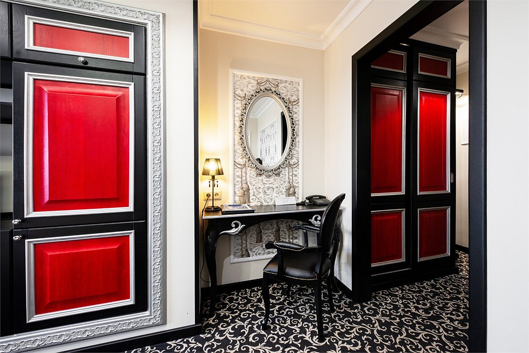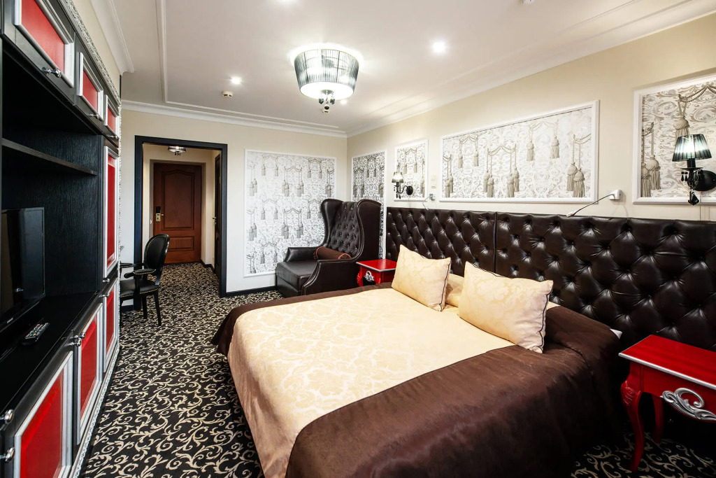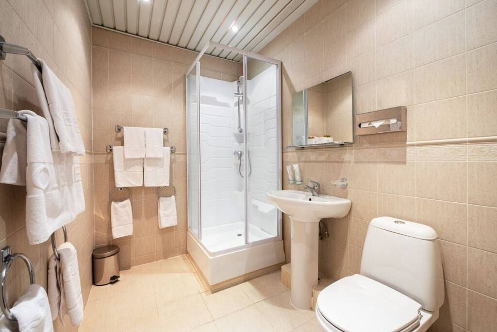 Wi-Fi, кулер, фен, душевая кабина, теплый пол, халаты, банные полотенца, тапочки, сауна, две односпальные или большая двуспальная кровать, тумбы, шкаф для одежды, вешалки, багажная тумба, зеркало, комод, чайник, питьевая вода, ковровое покрытие, стаканы, стул, стол, вид на парк, внутренний телефон, телевизор с плоским экраном, мини-холодильник, москитная сетка, гостиничная парфюмерияВ гостиничном номере