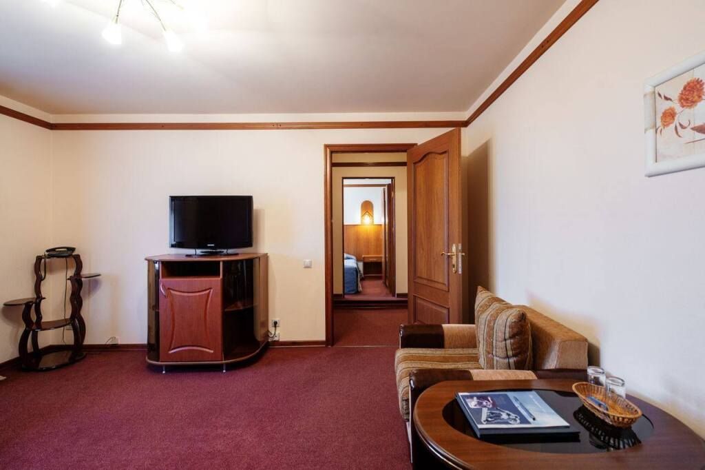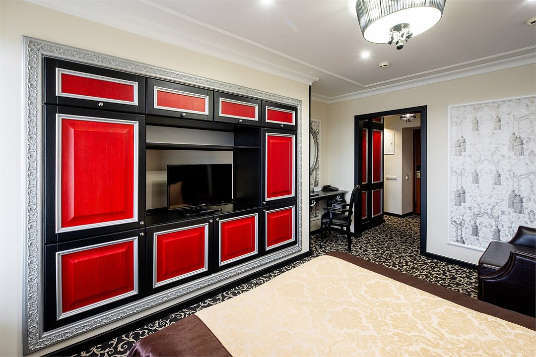 Wi-Fi, кондиционер, фен, электронные замки, душевая кабина, халаты, банные полотенца, тапочки, две полутораспальные кровати, журнальный столик, багажная тумба, зеркало, две комнаты, информационная карта, меню, ковровое покрытие, вид на город, кулер на этаже, кресло, стаканы, стул, раскладной диван, внутренний телефон, телевизор с плоским экраном, мини-холодильник, шкаф-купе, гостиничная парфюмерия, номер для некурящихВ гостиничном номере