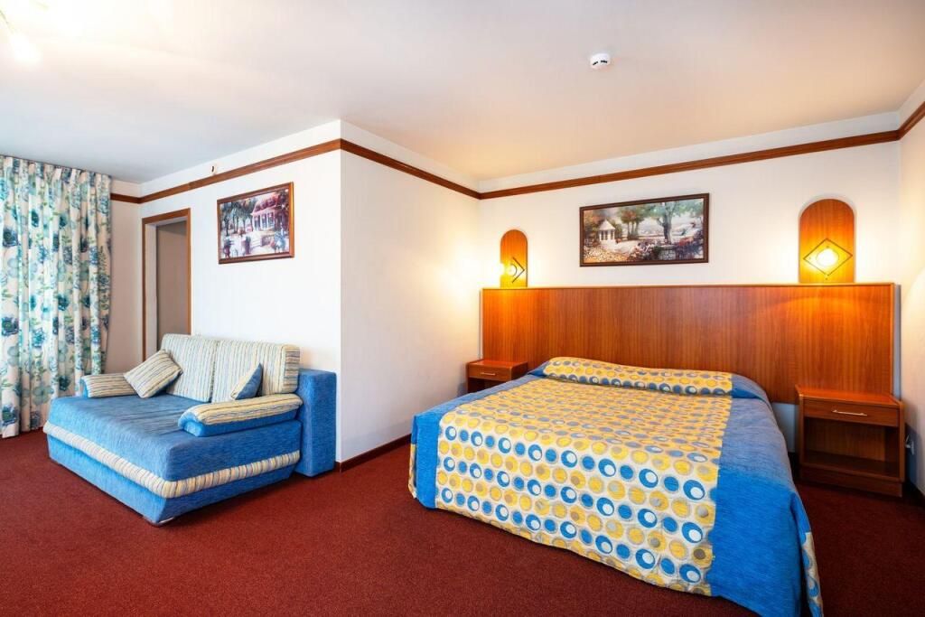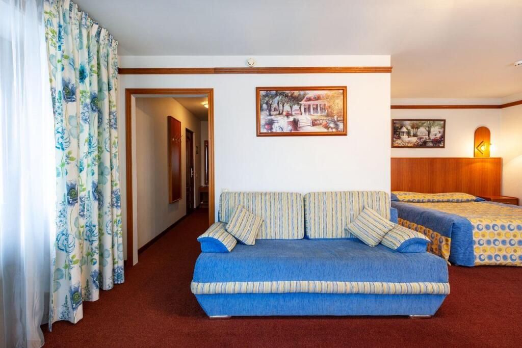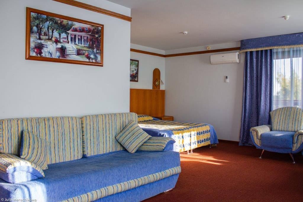 Двухкомнатный номер площадью 30 кв.м. для комфортного размещения четырех человек. В номере две комнаты - холл с двуспальным диваном и спальня с двуспальной кроватью. Возможна установка детской кроватки. *изображение на сайте носит информационный характер, может не соответствовать предоставляемому номеру в отдельных элементах интерьера или цветовой гаммеУслуги и удобства