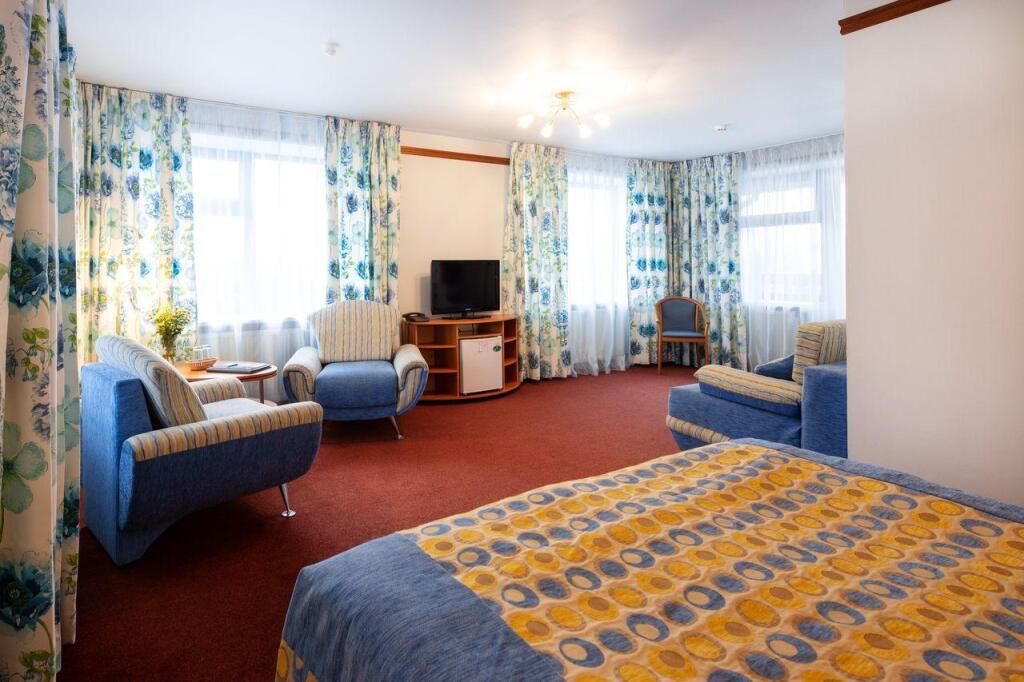 Wi-Fi, кулер, фен, душевая кабина, теплый пол, халаты, банные полотенца, тапочки, сауна, две полутораспальные кровати, тумбы, стулья, вешалки, багажная тумба, зеркало, комод, чайник, ковровое покрытие, стаканы, стол, вид на парк, внутренний телефон, телевизор с плоским экраном, мини-холодильник, москитная сетка, гостиничная парфюмерия, номер для некурящихВ гостиничном номере