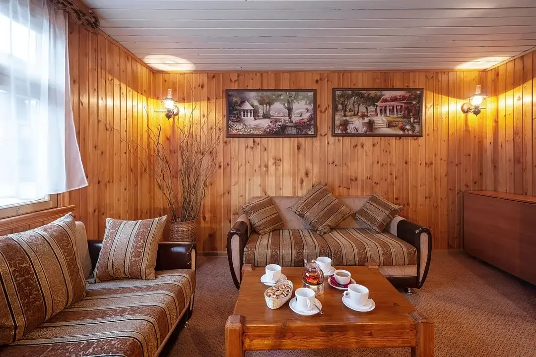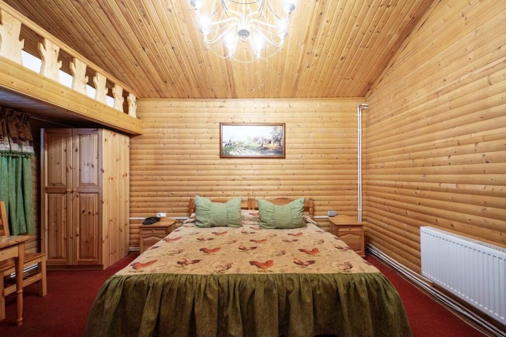 Гостиничный комплекс предлагает разнообразные удобства: от основного здания-шале с комфортными номерами до 16 уютных русских домиков, некоторые из которых оборудованы саунами для максимального расслабления. Это пространство идеально подходит для тех, кто ищет спокойствие и комфорт во время своего отдыха.