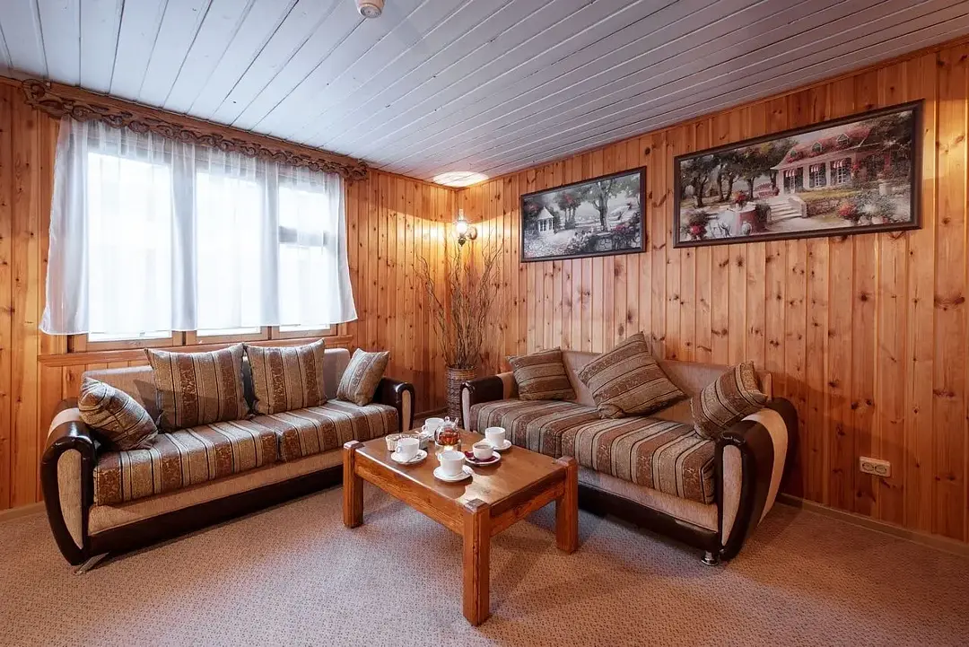 Интерьер, выполненный из натурального дерева, создает атмосферу тепла и уюта. После парной можно насладиться купанием в дубовой бочке, а на втором этаже расположены две комфортные комнаты для отдыха, оснащенные караоке и аудио-видео системами. Это идеальное место для небольших компаний и семейного времяпрепровождения, где можно приятно провести выходной вдали от городской суеты. Комплекс рассчитан на 6–10 человек.