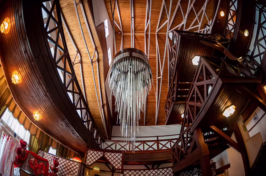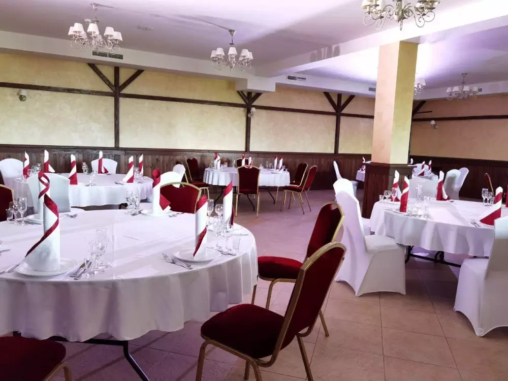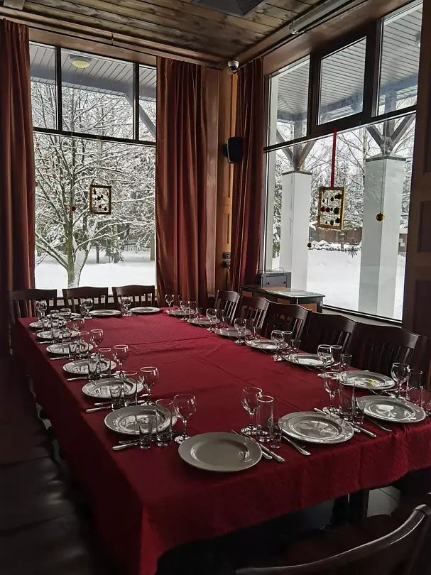 На нижнем этаже располагается банкетный зал «Бугель-Вугель» с просторной верандой, которая открывает своим гостям захватывающий вид на живописные холмы и бескрайние просторы. Это идеальное место для организации незабываемых событий — от романтических свадеб с выездной церемонией до ярких корпоративов и фуршетов.