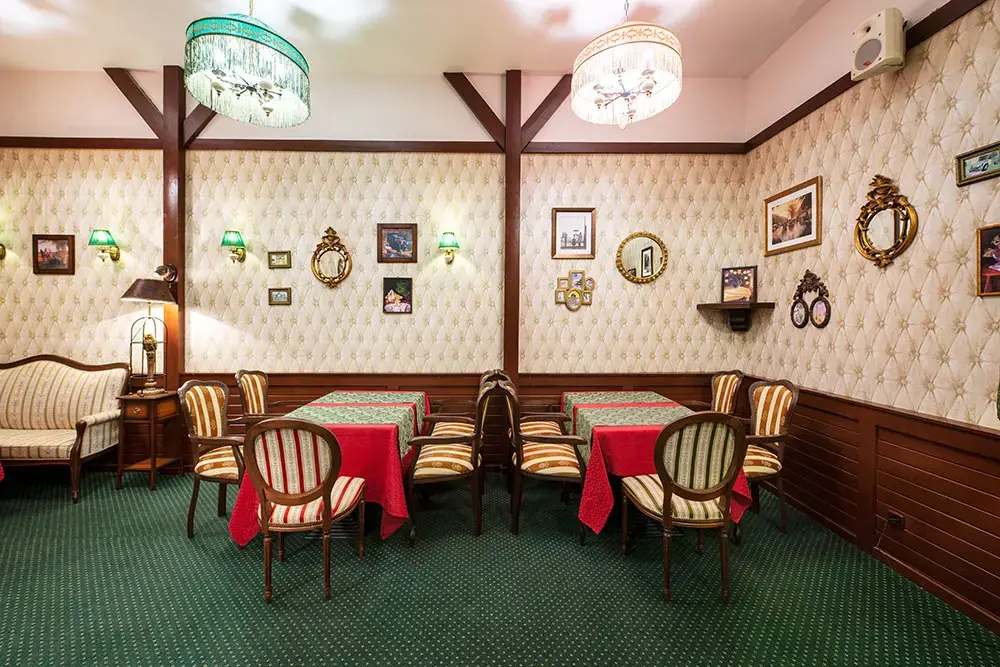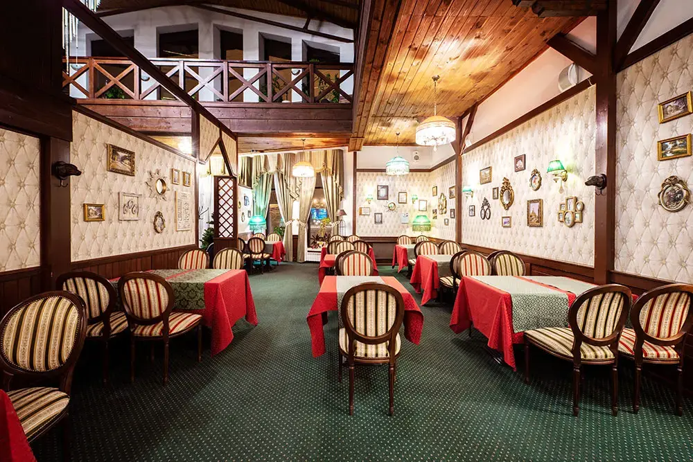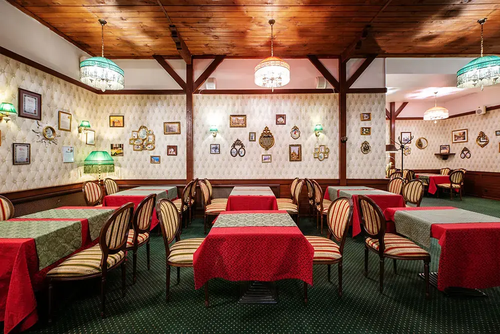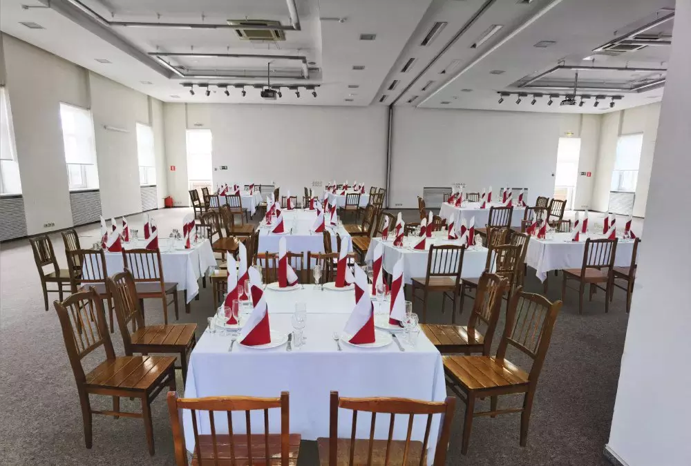 Зал предлагает разнообразные варианты рассадки и фуршетных зон, а также оснащен современным музыкальным и световым оборудованием, что позволяет проводить мероприятия любого уровня. Профессиональная команда поваров готова воплотить в жизнь самые смелые кулинарные желания, наполняя праздник изысканными вкусами и атмосферой веселья.