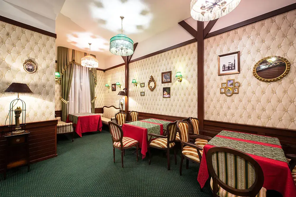 - Размещение домашних животных, таких как собаки и кошки, возможно только в номерах категории «Русский дом» за дополнительную плату в размере 1500 ₽/сутки. Хозяин должен самостоятельно обеспечивать уход и содержание своих питомцев. Для собак обязательно наличие при себе намордника. Выгул собак осуществляется только на поводке.