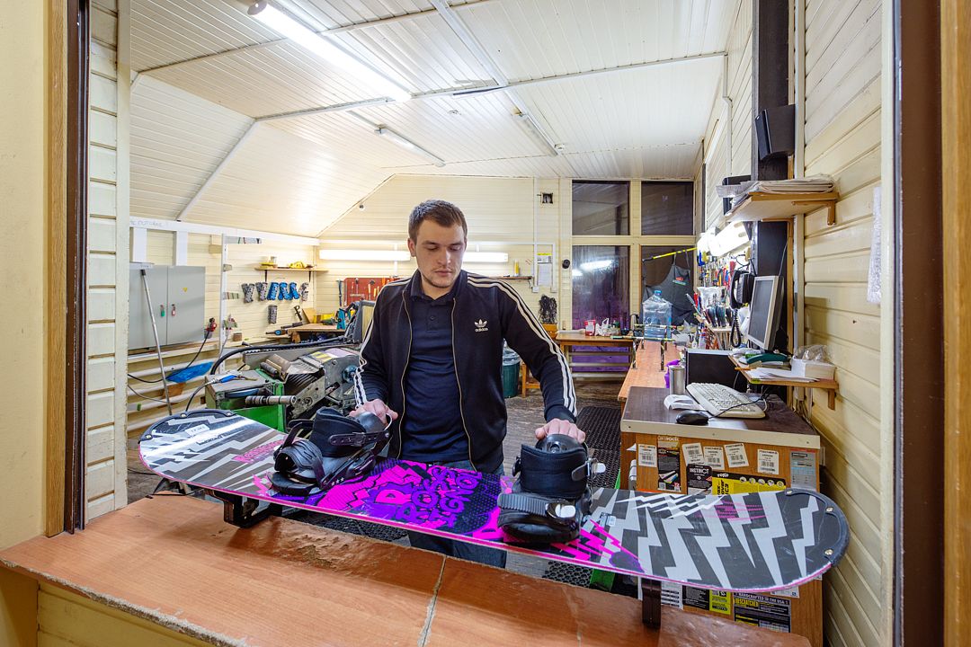 Среди основных услуг — установка креплений, подготовка лыж и сноубордов, а также обработка скользящей поверхности и квалифицированный ремонт. SKI-сервис удобно расположен рядом с главной кассой парка, что делает посещение сервиса простым и комфортным перед началом зимних тренировок.