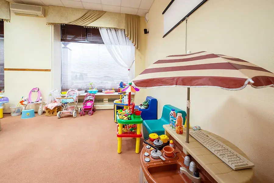 На втором этаже гостиницы расположена уютная игровая комната для детей от 3–10 лет, где они могут весело проводить время, наслаждаясь множеством увлекательных игр и забав. Просторная игровая зона укомплектована ярким, привлекательным оборудованием и специальной мебелью для детей, а также мягкими игровыми модулями и возможностью смотреть любимые фильмы и мультфильмы под наблюдением опытных воспитателей.