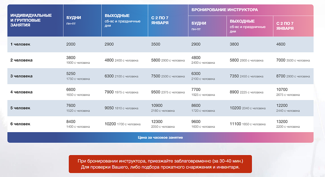 Здесь предлагается как индивидуальное, так и групповое обучение, что позволит подобрать оптимальный формат занятий. Забота о безопасности на первом месте — перед каждым занятием происходит тщательная проверка экипировки.