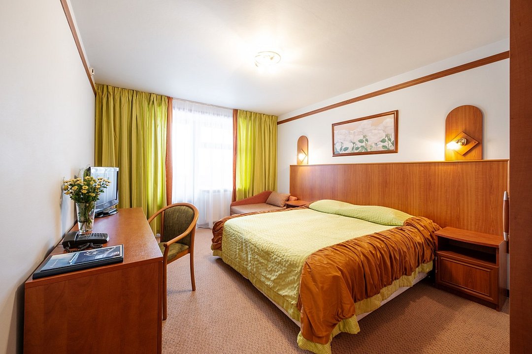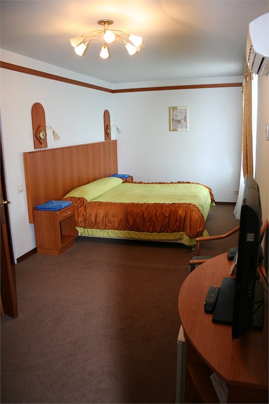 Стандартный однокомнатный улучшенный номер площадью около 22 кв.м. для комфортного размещения двух человек. В номере расположены две полутороспальные кровати. Возможна установка детской кроватки или евро раскладушки. *изображение на сайте носит информационный характер, может не соответствовать предоставляемому номеру в отдельных элементах интерьера или цветовой гаммеУслуги и удобства