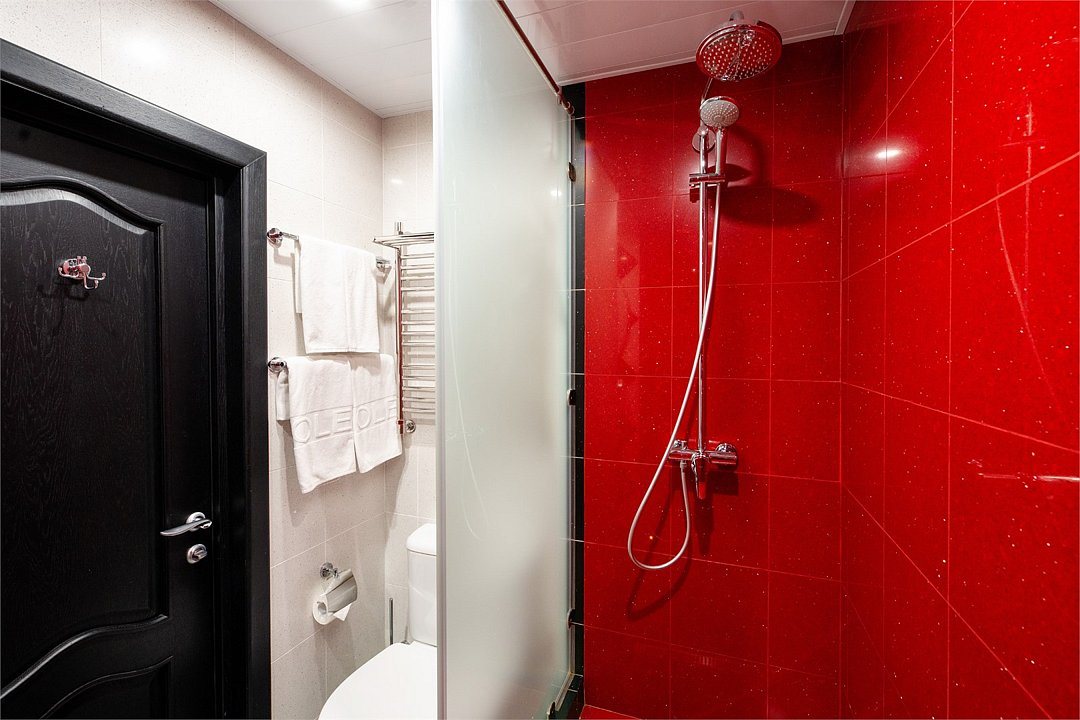 Wi-Fi, кондиционер, фен, электронные замки, душевая кабина, биде, халаты, банные полотенца, тапочки, балкон, двуспальная кровать, раковина, кулер на этаже, вид на парк, внутренний телефон, телевизор с плоским экраном, мини-холодильник, гостиничная парфюмерия, угловой диван-кроватьВ гостиничном номере