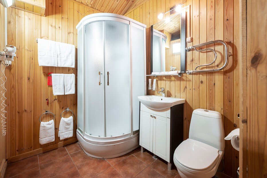 Русский домик с сауной - однокомнатный деревянный домик с сауной. Площадь домика 26 кв.м. для комфортного размещения двух-четырех человек. В домике расположены две полутороспальные кровати, дополниительное место на палатях. Возможна установка детской кроватки или евро-раскладушки. Площаль сауны - 3 кв.м. *изображение на сайте носит информационный характер, может не соответствовать предоставляемому номеру в отдельных элементах интерьера или цветовой гаммеУслуги и удобства