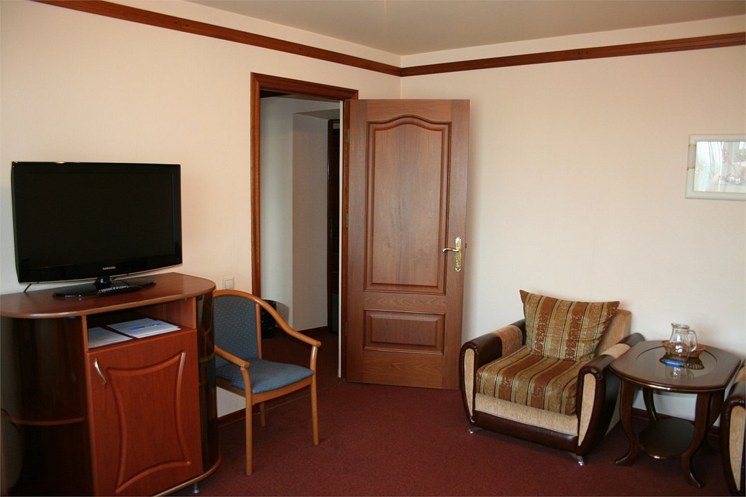 Для проживания двух - четырех человек. СЬЮТ 31 кв.м - представляет собой просторную комнату с холлом для отдыха и спальней в алькове. В холле стоят два кресла, диван, раскладывающийся на двоих, журнальный столик, телевизор, телефон. В нише расположена двуспальная кровать и прикроватные тумбочки. При входе в номер - шкаф, вешалка, полка для багажа. Ковровое покрытие. Санузел с душем, феном и туалетными принадлежностями. Панорамный балкон.Услуги и удобства