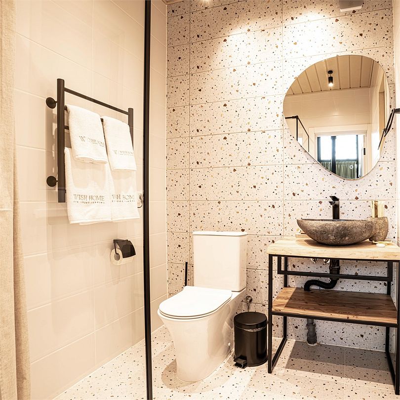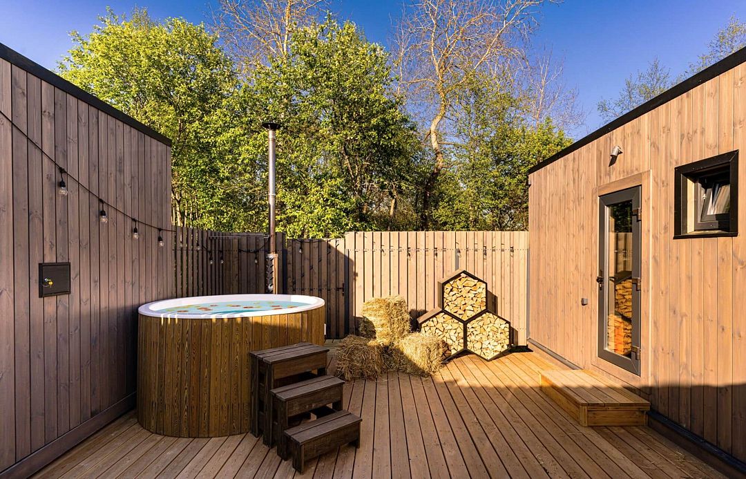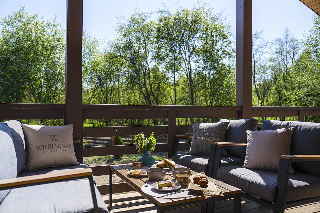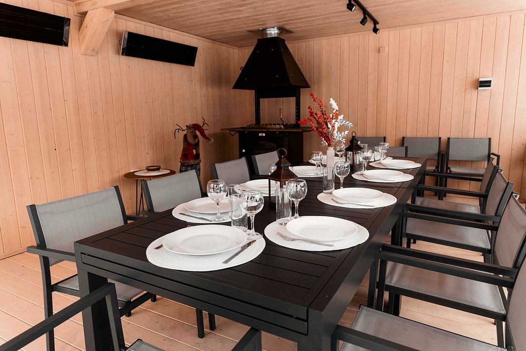 Лодж включает: 2 спальни, комфортную ванную комнату и гостиную. В спальнях – удобные двуспальные кровати с ортопедическими матрасами для крепкого восстанавливающего сна. Гостиная оснащена дровяным камином, уютной зоной отдыха и обеденной зоной с функциональной кухней. Увеличенная терраса с уличной мебелью и гриль-зона идеально подходят для завтраков под теплыми лучами утреннего солнца и для запоминающихся вечеров под открытым небом.