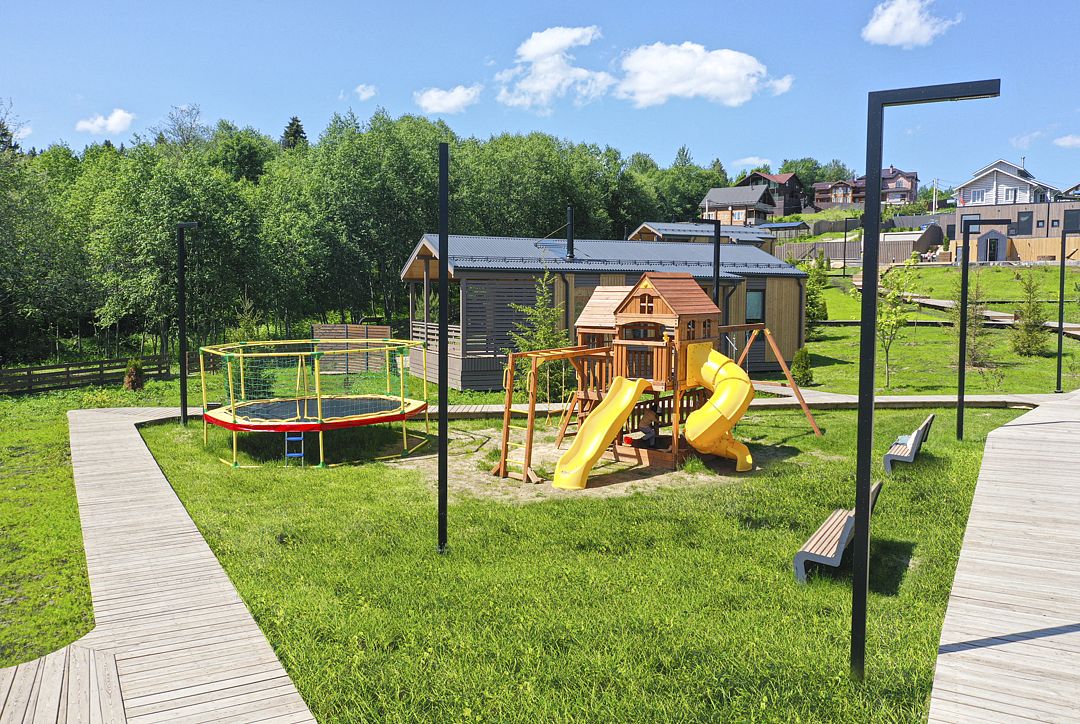Для маленьких путешественников — детская площадка на территории резиденций, детское меню для сытных завтраков и кроватки для крепкого сна.
