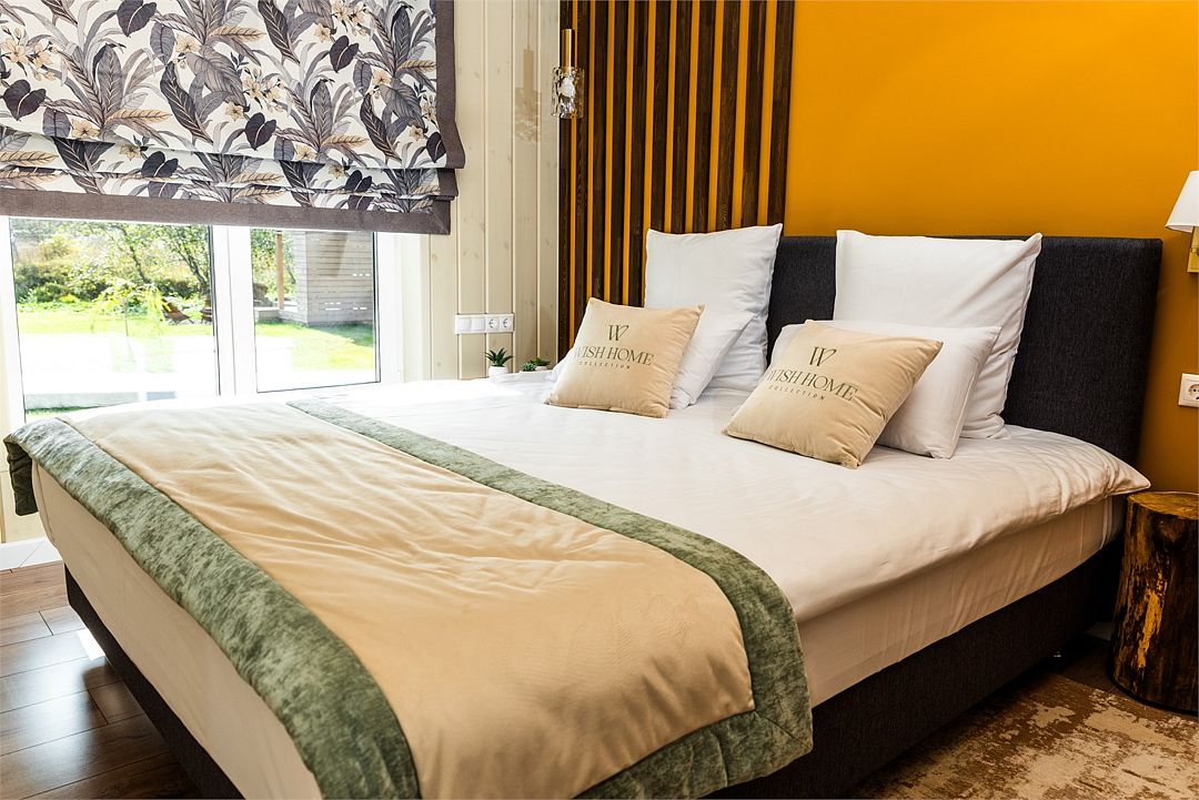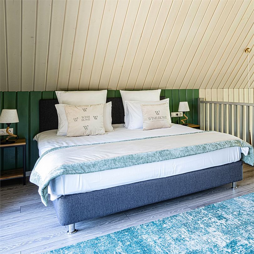 Лодж включает: 2 спальни, комфортную ванную комнату и гостиную. В спальнях – удобные двуспальные кровати с ортопедическими матрасами для крепкого восстанавливающего сна. Гостиная оснащена дровяным камином, зоной отдыха и обеденной зоной со встроенной кухней. Рядом с лоджем располагается уютная беседка BBQ под развесистыми кронами деревьев для приготовления сочных мясных блюд и барбекю на углях.