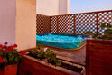 Пентхаус с террасой на крыше отеля с шезлонгами , 6-ти местной джакузи и зоной для пикника с набором мебели. В обоих спальнях есть большие телевизоры с плоским экраном и доступом в интернет, кровать KingSize в одной спальне и раскладывающийся угловой диван во второй. Гостиная оборудована кухней с варочной поверхностью, вытяжкой и потолочным вентилятором, а так же сплит-системой, холодильником и телевизором. Гостям доступна премиум линейка отельной парфюмерии, банные халаты. дополнительно в номере можно разместить еще 2х гостей, для отдыха им имеются пуфы, раскладывающиеся в полноценную кровать.