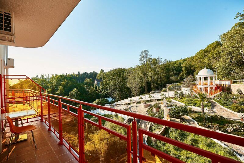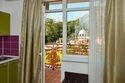 Одноместный номер Делюкс с балконом и видом на сад и горы имеет полутора спальную кровать 120см шириной на которой допускается размещение 1 взрослого гостя и ребенка до 6ти лет. За микроклимат в номере отвечает сплит-система, есть мини-холодильник, столовая посуда и столовые принадлежности. На балконе номера стоит садовая мебель и допускается курение.
