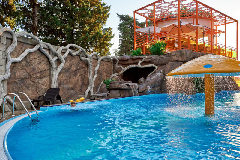 В отеле работают ресторан с европейской и итальянской кухней, обеденный зал, на втором этаже открыт лобби-бар, а у бассейна есть бар с напитками. В распоряжении гостей два открытых бассейна - взрослый с гидромассажем и подогревом и мелководный детский с красивым подсвечивающимся водопадом, а также финская сауна, аэрохоккей и настольный теннис. Для автовладельцев предусмотрена охраняемая парковка, на территории доступен беспроводной интернет, среди услуг также круглосуточная стойка регистрации и багажная комната. Для юных гостей оборудована игровая площадка.