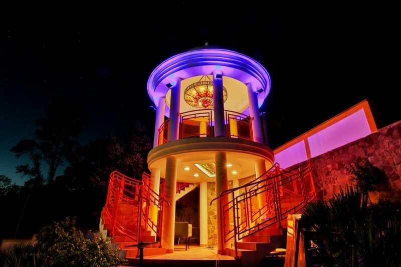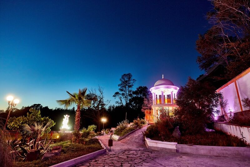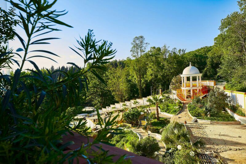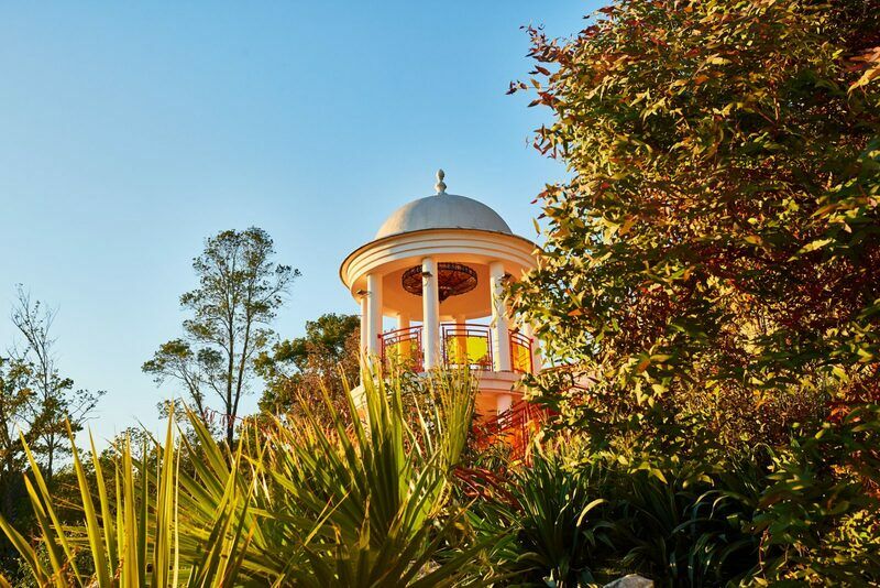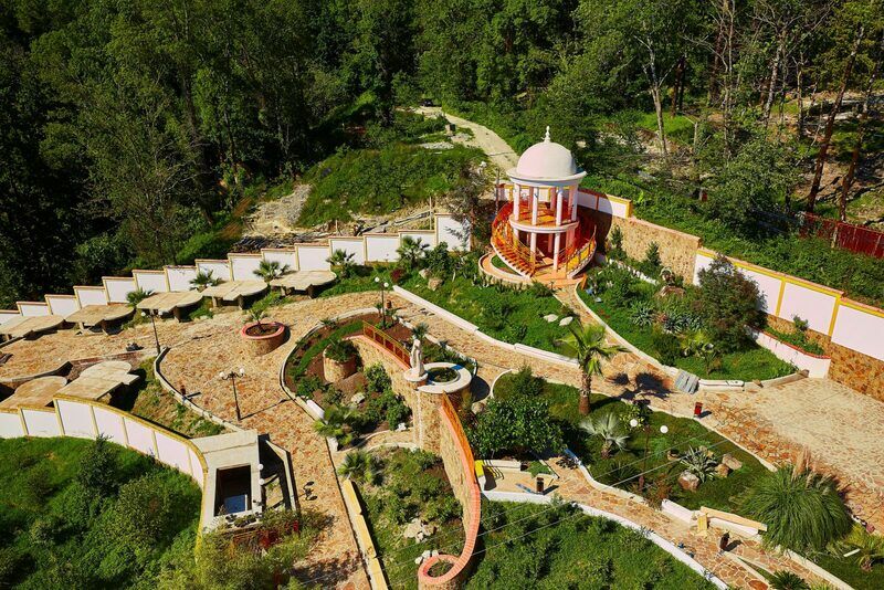 Вид из номера: горы, сад и территорию отеля, круговой панорамный вид с террасы на крыше отеля