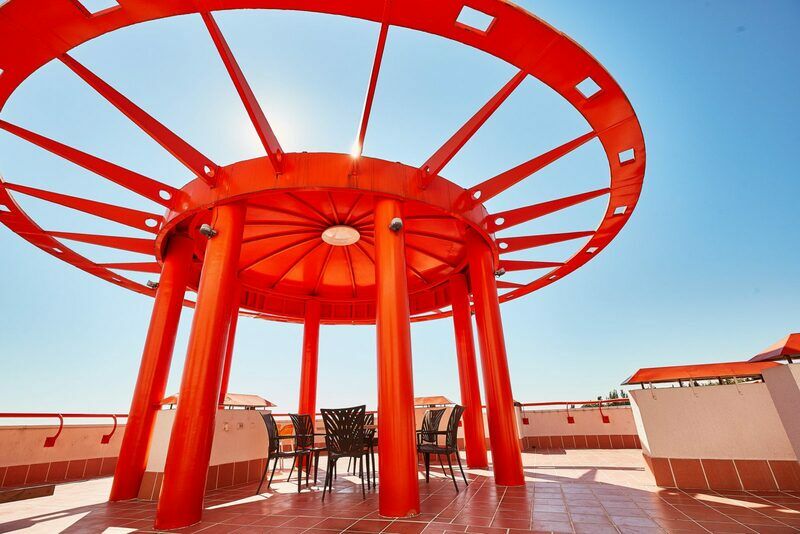 Семиэтажный корпус отеля с фасадами, выполненными в средиземноморском стиле, возвышается на благоустроенной закрытой территории с субтропическим садом, фруктовыми деревьями и двумя прудами. Жилой фонд состоит из 39 номеров разных категорий, есть как стандартные номера, так и роскошный пентхаус с террасой и джакузи на крыше. Во всех номерах независимо от уровня комфорта есть собственная ванная комната, кухонный уголок, кондиционер и плазменный телевизор