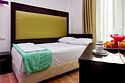 2-х местный номер Делюкс без балкона подойдет для размещения 2х гостей, предпочитающих тихий отдых , вид на цветущий сад отеля и пруд с водопадом, в котором живут черепахи и яркие карпы Кои. Для размещения 3го гостя в номере есть пуф, трансформирующийся в полноценную дополнительную кровать. Оборудован мини-кухней со столовой посудой. В ванной комнате номера, кроме душа имеется ванна с поручнями. Возможно размещение ребенка 3-6 лет на кровати с родителями или люля для ребенка 0-3 года.Услуги и удобства